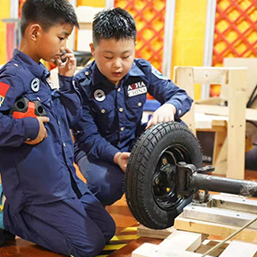 完全开放的创造过程,天马行 空、无拘无束!从外观设计、零件组合、整车组装等环节都调动着学员每一根创意神经。