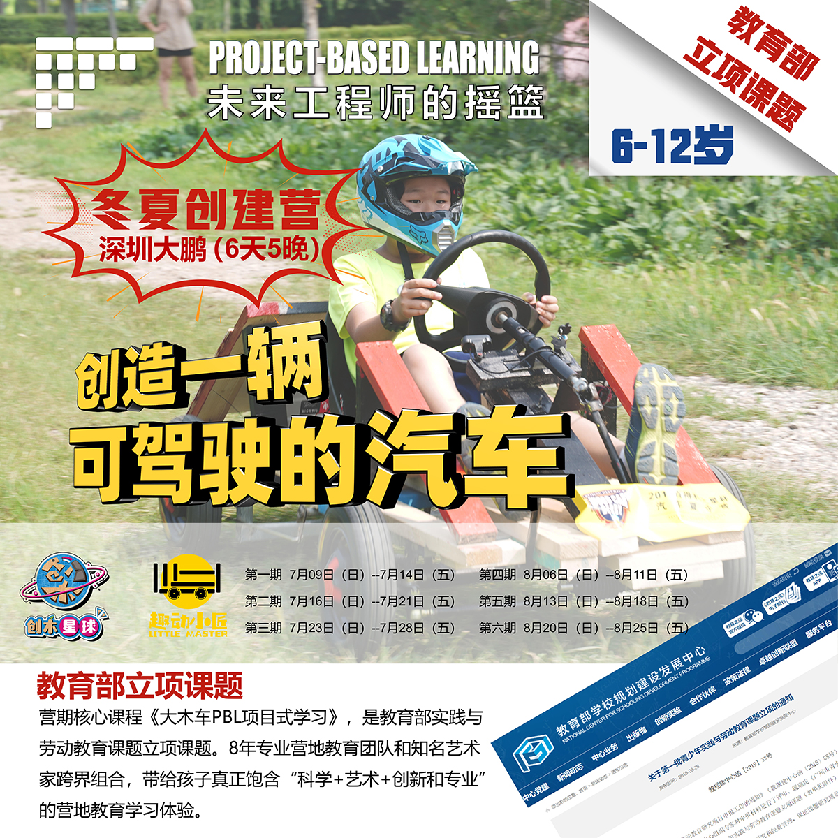 凭借多年教学经验,我们的《大木车PBL项目式学习》成为教育部实践与劳动教育课题立项课题。8年专业PBL教育团队和知名艺术家跨界组合,带给孩子真正饱含“科学+艺术+创新+专业”的PBL教育学习体验。
